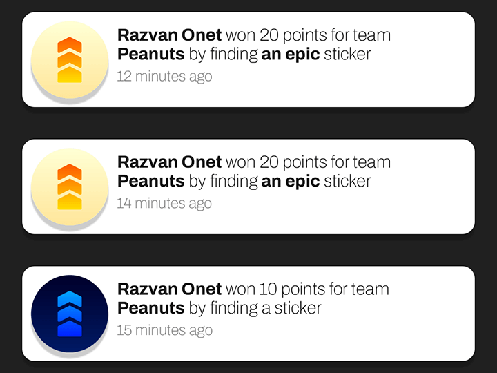 Attendees have to search or complete challenges for stickers with embedded QR codes in the event venue.